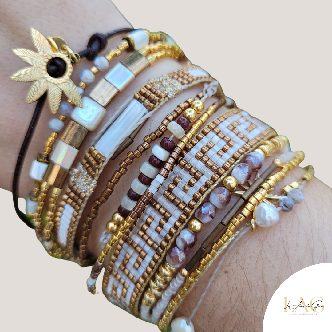 Deux tissages de perles de verre et de son fermoir interchangeable aimanté finition dorée or 24k (45mm)